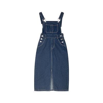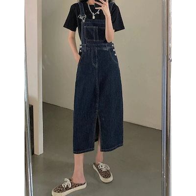 【即納!本日のイベント】セミロング オーバーオール 体型カバー デニムスカート スリット レディース オールインワン サロペット 新しい 韓国ファッション イチオシオールインワン 時短コーデ サロペッ