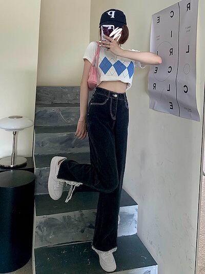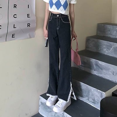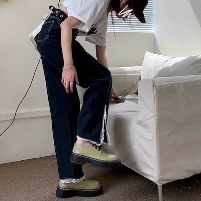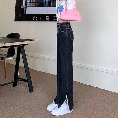 大好評 パンツ Gパン デニム デニムパンツ 個性的 大きいサイズ レディース ボトムス ストレートパンツ フリル ハイウエスト 黒 ブラック 春 夏 秋 冬 大きいサイズ 大人 おしゃれ 可愛い か