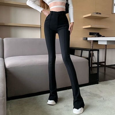 デザインセンス ブラック ロングパンツ レディース服 新しい カジュアル ワイドパンツ ハイウエスト 着痩せ