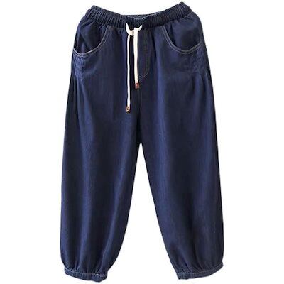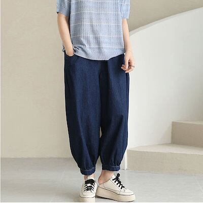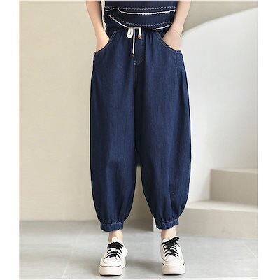 大きいサイズ ジーンズ レディース 薄い 九分丈パンツ レディース ゆったり 着痩せ デニム ワイドパンツ