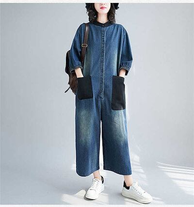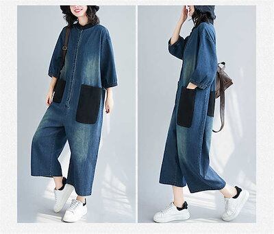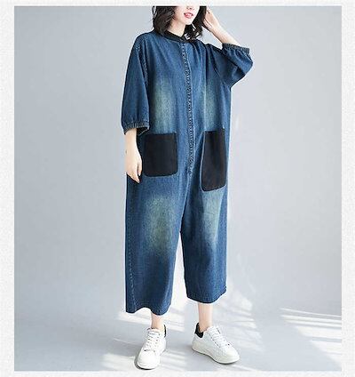 デニム つなぎ レディース デニム オールインワン デニムパンツドレス 連体服 パンツドレス オーバーオール デニムオールインワン 長袖 ロングパンツ ツナギ 古着風 マタニティ ゆったり目