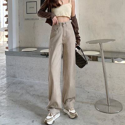 2024人気の新作レディースデニムパンツ美脚 ストレートゆったりジーンズ着痩せドレープ感ズボン 春秋 ワイドパンツ デニムボトムス