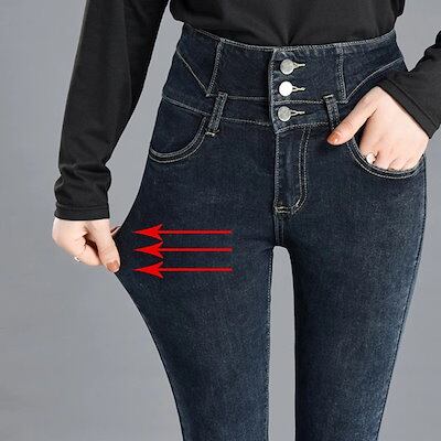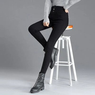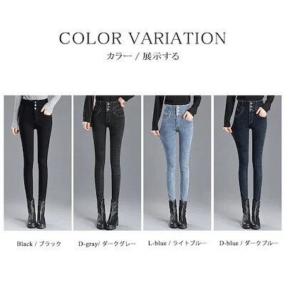 新作 2TYPE ハイウエスト 裏起毛で 美脚 スキニー ジーンズ レディース 韓国ファッション