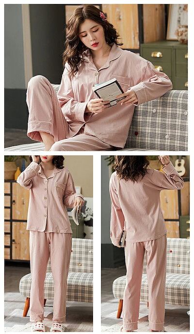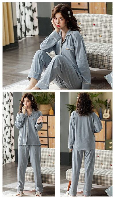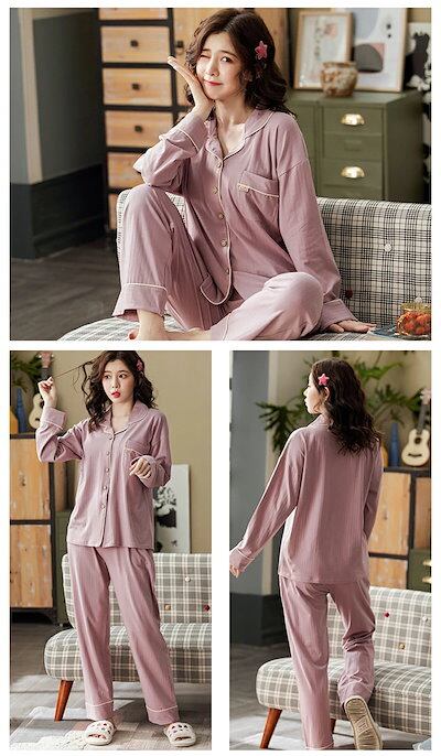 【急速出荷】[激安]ルームウエア パジャマ レディース 綿100% コットン 長袖 長ズボン 春 夏 秋 上下セット 前開き 冷え性対策 柔らかい 暖かい 肌触りがいい 10color