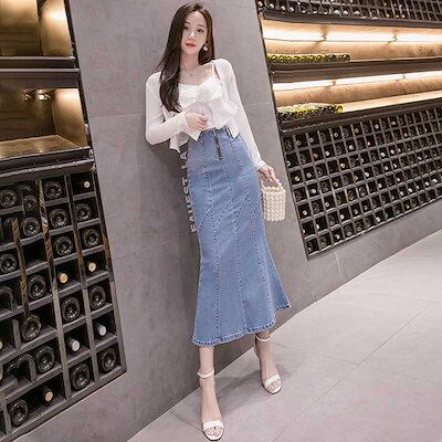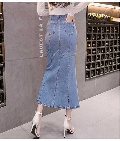 デニムスカート マーメイド ロングスカート 上品 スタイリッシュ ボトムス オシャレ 春秋コーデ ハイストレッチ 夏コーデ 細身 タイトスカート ハイウエスト