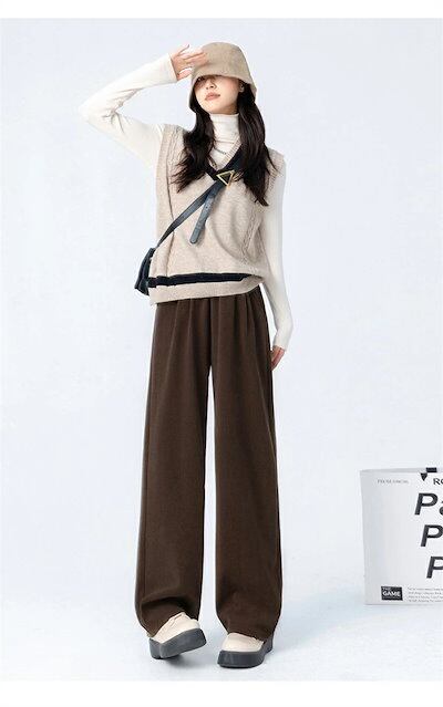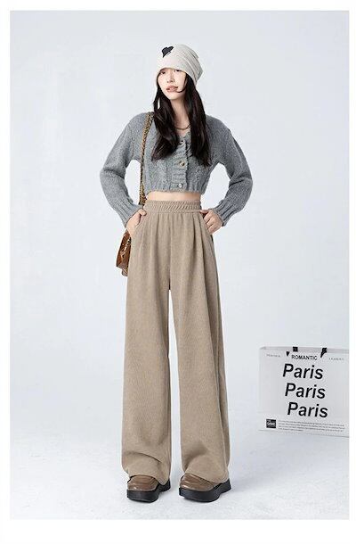 ワイドパンツ ガウチョパンツ パンツ レディース 裏起毛 ウエストゴム カーブパンツ 秋冬 ボトムス ロングパンツ ワイド 体型カバー ポケット付き ロング丈 ストレートパンツ ゆったり 無地 パンツ