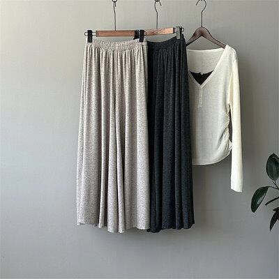 ワイドパンツ 秋 ガウチョパンツ スカート見える レディース フレアパンツ 柔らか ロングパンツ ウエストゴム バギーパンツ 大きいサイズ ゆったり リラックス 着心地よい ルームウェア オシャレ ふ
