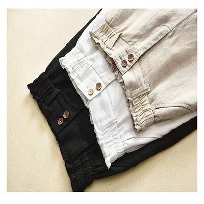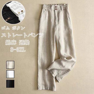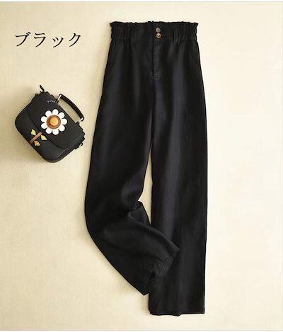 ストレートパンツ レディース ロングパンツ 綿 麻 パンツ ウエストゴム ワイドパンツ ポケット付き ボトムス 長ズボン ハイウエスト ズボン ストレート 無地 ガウチョパンツ ワイド 高見え ゆった