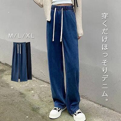 デニム パンツ レディース ワイドパンツ ズボン ロングパンツ デニムパンツ ボトムス ジーンズ ガウチョ きれいめ 体型カバー ウエストゴム お洒落 大きいサイズ 着痩せ 美脚 通勤 通学 ゆったり