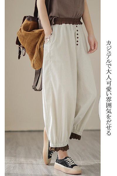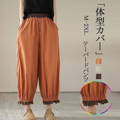 テーパードパンツ テーパード ボトムス ガウチョパンツ レディース 秋 ゆったり ハロンパンツ ボトムス 無地 ロングパンツ ガウチョ 秋物 ウエストゴム 大きいサイズ 体型カバー 40代 50代 秋