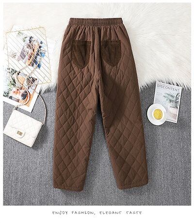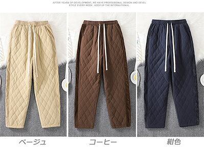 パンツ テーパードパンツ ガウチョパンツ レディース ロングパンツ キルティング ゆったり ボトムス 無地 秋冬 ウエストゴム 中綿入り 暖かい 大きいサイズ 体型カバー ポケット付き 厚手 ルームウ