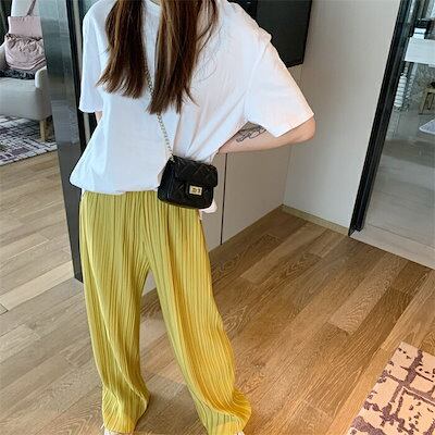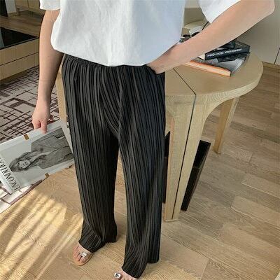 パンツ レディース プリーツパンツ 10分丈 秋 春 プリーツ パンツ ワイドパンツ リラックスパンツ ゆったり カジュアル ボトムス ルーズ ズボン 快適 ロング丈 ガウチョパンツ プリーツワイドパ