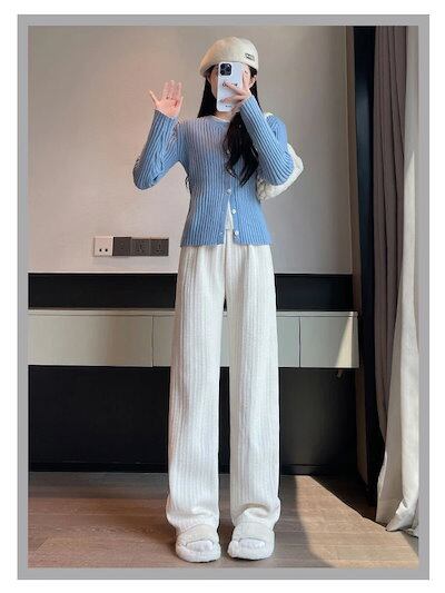 ワイドパンツ レディース コーデュロイ リブ ガウチョパンツ カジュアル ボトムス 肌触りよい ストレートパンツ ふんわり ロングパンツ ウェストゴム ハイウエスト 着痩せ ゆったり 美脚 細見え 春