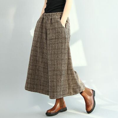 ワイドパンツ レディース ガウチョパンツ 7分丈 チェック柄 ウェストゴム 春ボトムス ズボンゆったり 大きいサイズ 秋冬 厚手 ロング ハイウエスト 体型カバー カジュアルコーデ 大人 おしゃれ き