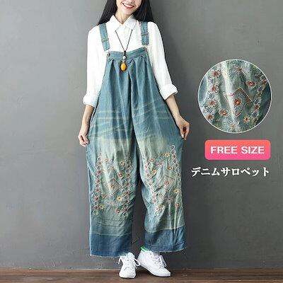 デニムサロペット 大きいサイズ 春 夏 秋 冬 レディース サロペットパンツ デニム ボトムス サロペット パンツ ワイド ガウチョ 大人 シンプル オールインワン 花柄 カジュアル デニムパンツ ジ