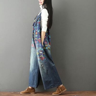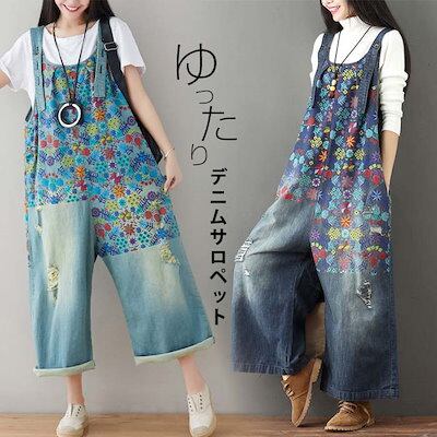 デニムサロペット 大きいサイズ レディース サロペットパンツ デニム ボトムス サロペット パンツ ワイド ガウチョ 大人 シンプル オールインワン 花柄 春 夏 秋 冬 カジュアル デニムパンツ ジ