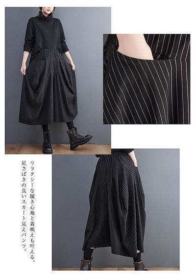 ワイドパンツ レディース 大きいサイズ 秋冬 きれいめ スカート 個性的 ゆったり ストラップ ワイド パンツ 秋 冬 カジュアル ガウチョパンツ スカート ウエストゴム 美脚パンツ ボトムス 着痩せ