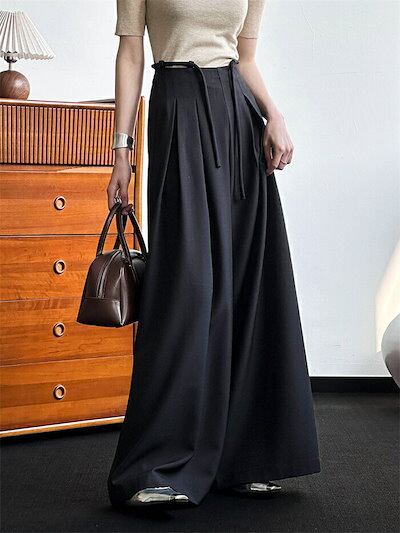 タックワイドパンツ レディース 春秋 パンツ ロングパンツ ガウチョパンツ 通勤 ボトムス 大人 リラックス オフィス フォーマル バギーパンツ イージーパンツ ゆったり カジュアル 体型カバー 上品