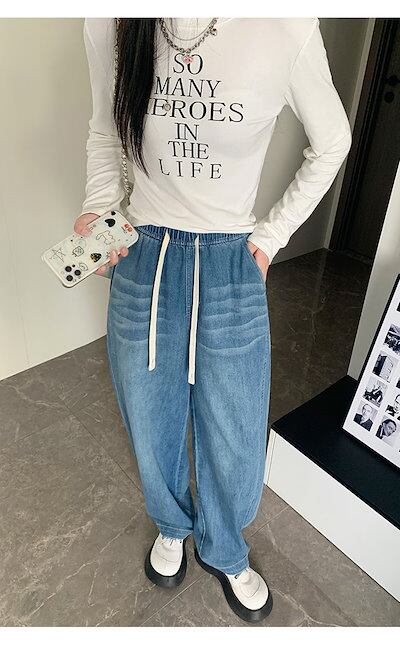 デニムワイドパンツ レディース デニム ワイド パンツ 春秋 ジーンズ ロングパンツ ボトムス イージーパンツ ガウチョ リラックス ウエストゴム ジーパン バギーパンツ ハイウエスト ゆったり おし