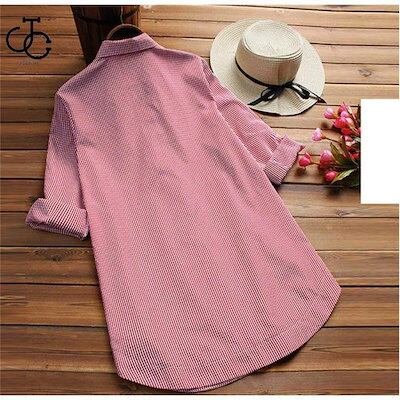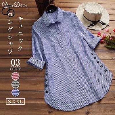 チュニック 春 ブラウス シャツ 長袖 レディース プルオーバー ブラウス ロングシャツ シャツワンピース 30代 40代 50代 夏 ゆったり ストライプ柄 可愛い