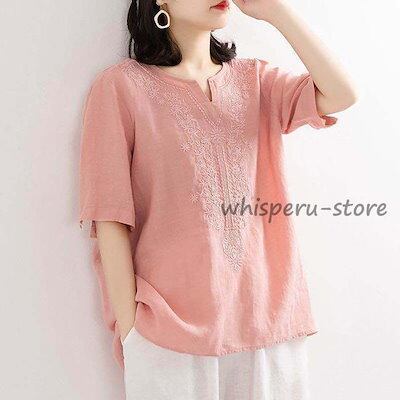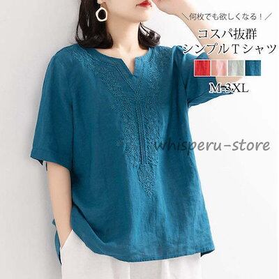 半袖tシャツ 夏新作 新生活2023 綿麻 五分袖 ゆったり レディース カットソー トップス 無地 シンプル おしゃれ カジュアル 新作 新品 20代 30代 40代 50代 女性3