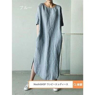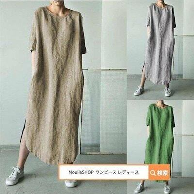ワンピース レディース レディース 40代 ロングワンピース ロング丈 大きいサイズ コットンワンピース 半袖 マキシワンピース スリット ゆったり 体型カバー カ