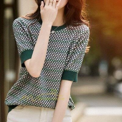 ニットトップス レディース ラウンドネック サマーニット 半袖 カットソー おしゃれ プルオーバー 着やせ 20代30代40代50代 通勤通学 日常感 上品 シンプル