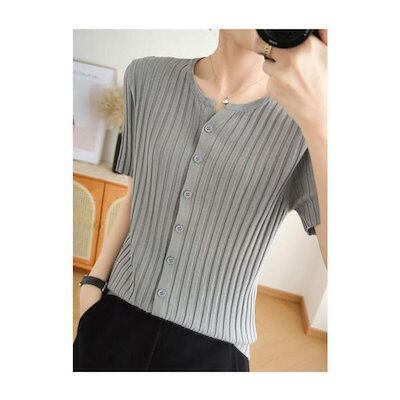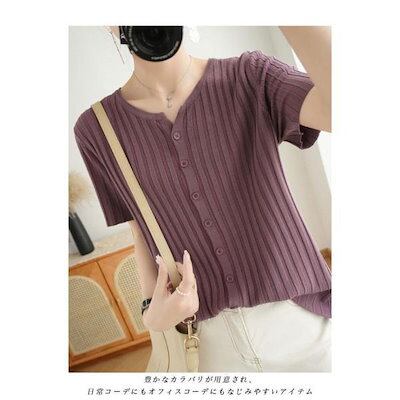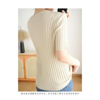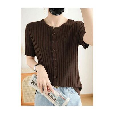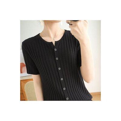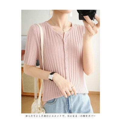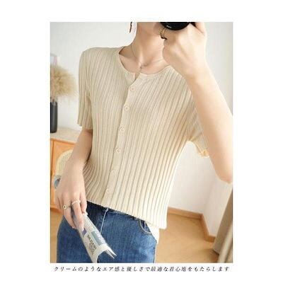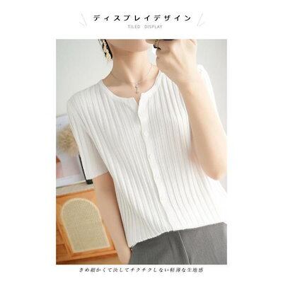 サマーニット レディース 半袖 ニット 涼しい 30代 40代 50代 Tシャツ 接触冷感 薄手 半袖Tシャツ 二の腕カバー 前開き クルーネック
