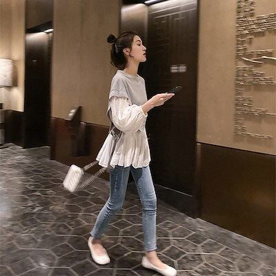 ブラウス パーカー ゆったりスウェットパ一カ一 韓国ファッションレディース ニット 着痩せ カジュアル 長袖ブラウスレイヤードトップス