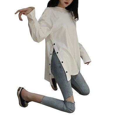 半袖Tシャツ 韓版 無地 長袖 ゆったり スリット スウェット 学生 流行り カジュアル 薄手tシャツ 半袖 半袖Tシャツ トップス レディース ロゴT