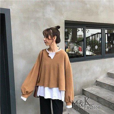 ブラウス パーカー レディース トップス 長袖 トレーナー ショート ドルマンスリーブ プルオーバー 2枚重ね カジュアル 春 秋