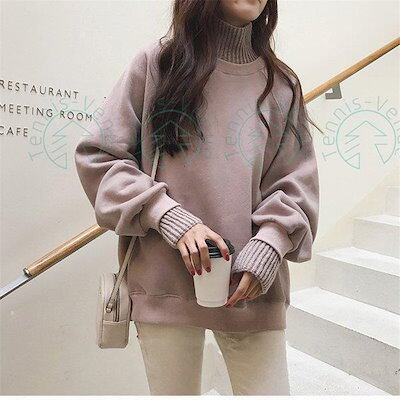 ブラウス パーカー 大きいサイズ レディース トップス 秋冬 長袖 ドルマンスリーブ フェイクレイヤードパーカー パーカ 裏起毛 プルオーバー ハイネックパーカー