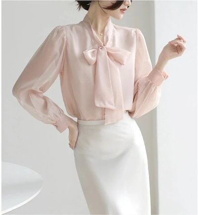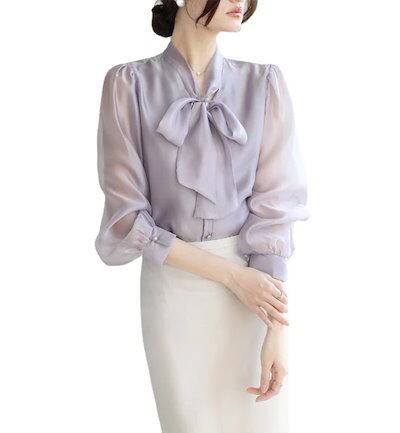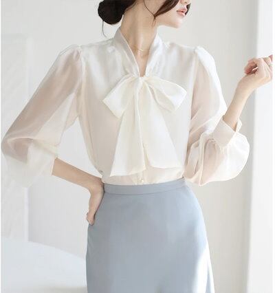 シャツレディースフランス風優しい長袖ビジネス職業通勤トップスワイシャツ韓国ファッションブラウスフランス風蝶ネクタイ