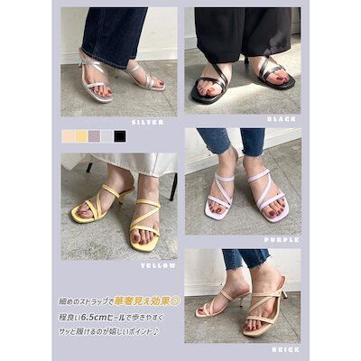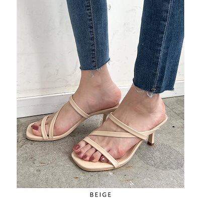 サンダル レディース ヒール 春 夏 靴 かわいい おしゃれ きれいめ エレガント カジュアル リゾート 旅行 韓国 ファッション / ナローストラップサンダル