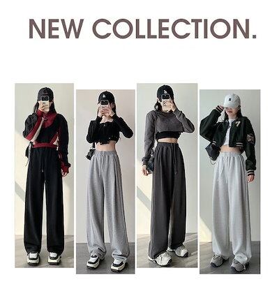 ワイドパンツ 韓国ファッション 着痩せ ゆったり ドローストリング スウェットパンツ ハイウエスト ワイドパンツ レディース ロングパンツ