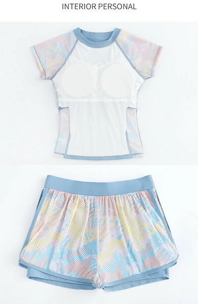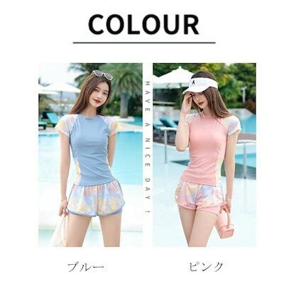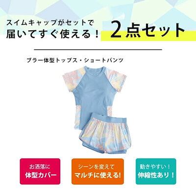 3日以内に出荷フィットネス水着 レディース セパレート 2点セット 上下セット 体型カバー水着 ママ水着 大きいサイズ おしゃれ かわいい 女性用 レイヤード風 ショートパンツ ラッシュガード 柄