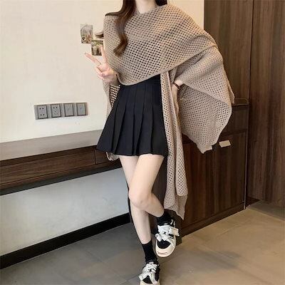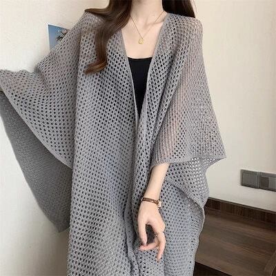 カーディガン 透かし編みのゆったりとしたニットストールカーディガンの外ハネフィットデザイン感 ブラウス