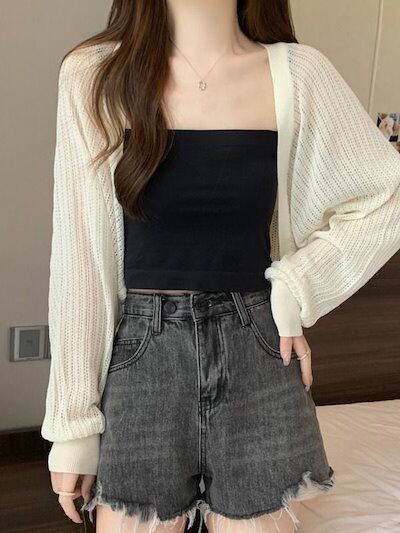 カーディガン ニットの日よけカーディガン夏 紫外線対策 ゆったりオフショルダー