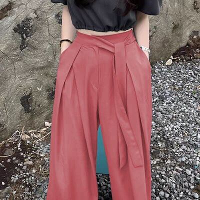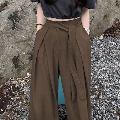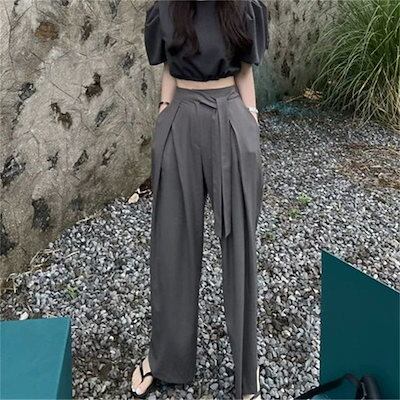 ロングパンツ 百掛け グレー ストレートシリンダ 垂下感 ワイドパンツ ファッション やせて見える