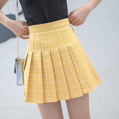 プリーツスカート 夏 アカデミック やせて見える チェックスカート Aの字の黒いスカート スカート 韓国 ファッション
