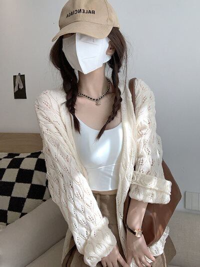 カーディガン 透かし彫り長袖ニット夏の新作薄手デザインゆったり日焼け止 紫外線対策 ブラウス