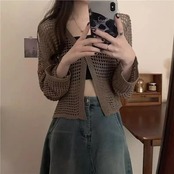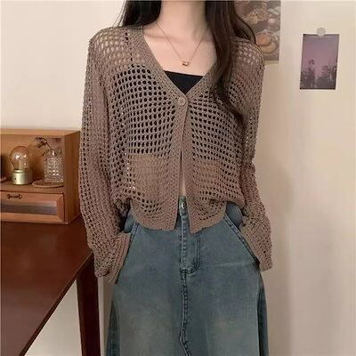 カーディガン Vネックニットカーディガンショート丈トップス長袖薄手コート夏 紫外線対策 日焼け止めブラウス