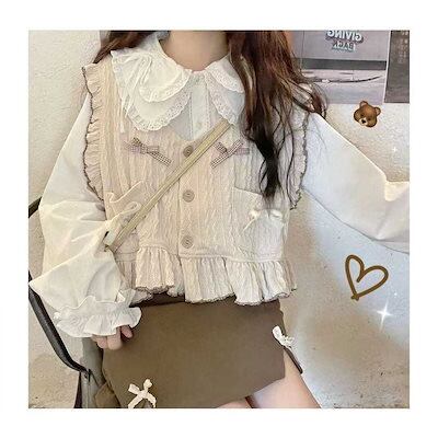 シャツ レディース 長袖ロリータインナーシャツ 秋 日系 かわいい レースレース ベビーカラー 韓国ファッション