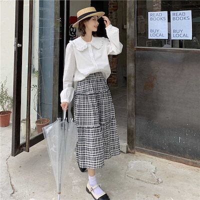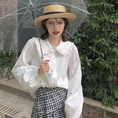 シャツ レディース 長袖ベビーカラーのシャツ 秋 フランス 薄い 白いシャツ 韓国ファッション