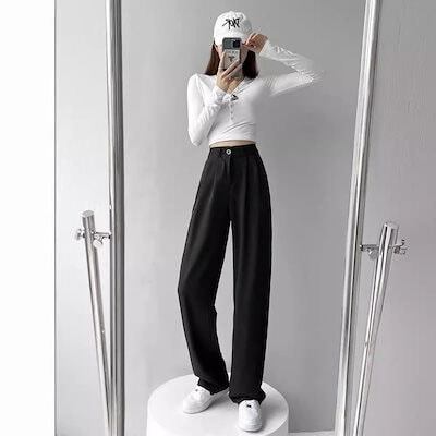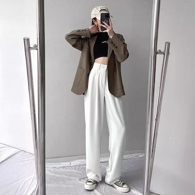 ロングパンツ 百掛け ブラックパンツ 秋 ワイドパンツ ハイウエスト ストレートパンツ