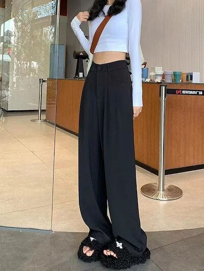 ロングパンツ 百掛け 垂下感 カジュアルパンツ ストレートパンツ ワイドパンツ ファッション やせて見える