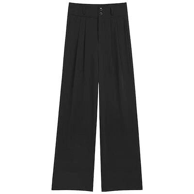 ロングパンツ 百掛け 秋 やせて見える ストレートシリンダ カジュアル ドロップ感 ゆとりがある 黒ワイドパンツ ファッション やせて見える5