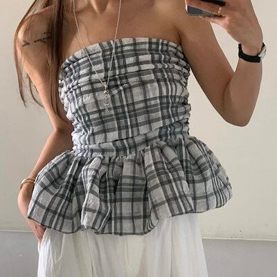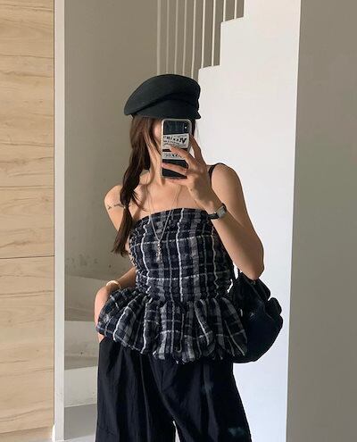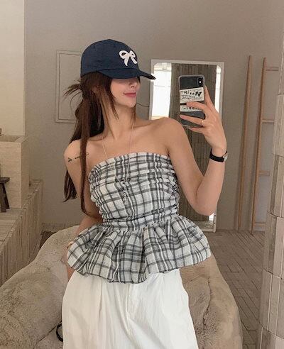 2024 夏 韓国トップス シャツ ノースリーブ チェック柄 スリム 細見え 夏 白 黒 おしゃれ かわいい 韓国ファッション レディース お出かけ