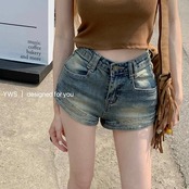 2024 春夏パンツ ショート丈 デニム ジーンズ スリム スキニー ウォッシュ加工 ハイウエスト 美脚効果 脚長効果 細見え 夏 おしゃれ かわいい 韓国ファッション レディース お出かけ