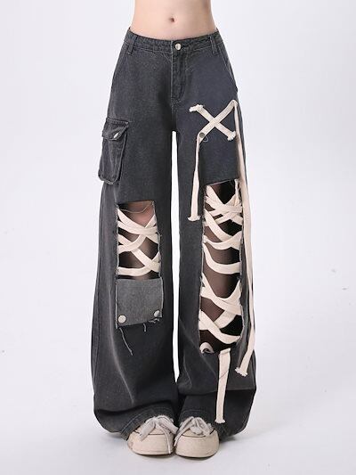 2024夏 韓国 デニムパンツ ボトムス ジーンズ ファッション系スタイル ゆるダボ ジーンズ シルエット加工 カジュアル メンズライク10